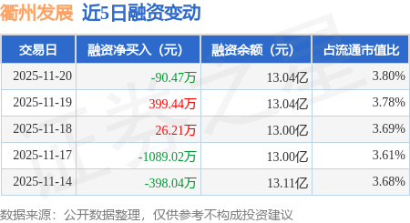 证券之星消息,11月20日,衢州发展(600208)融资买入2408.73万元,融资偿还2499.2万元,融资净卖出90.47万元,融资余额13.04亿元。