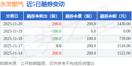 证券之星消息,11月20日,水发燃气(603318)融资买入358.52万元,融资偿还464.89万元,融资净卖出106.37万元,融资余额1.23亿元。