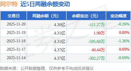 证券之星消息,11月20日,阿尔特(300825)融资买入1012.11万元,融资偿还1123.38万元,融资净卖出111.27万元,融资余额4.3亿元。