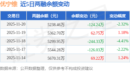 证券之星消息,11月20日,优宁维(301166)融资买入201.61万元,融资偿还325.85万元,融资净卖出124.24万元,融资余额5238.46万元。