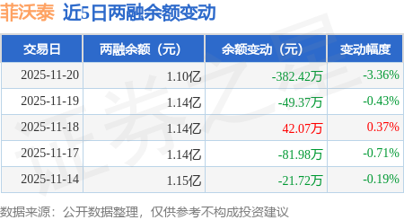 证券之星消息,11月20日,菲沃泰(688371)融资买入463.89万元,融资偿还846.31万元,融资净卖出382.42万元,融资余额1.1亿元。