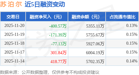 证券之星消息,11月20日,苏 泊 尔(002032)融资买入362.59万元,融资偿还763.16万元,融资净卖出400.57万元,融资余额5355.11万元。
