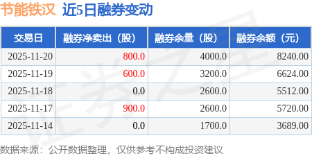 融券方面,当日融券卖出800.0股,融券偿还0.0股,融券净卖出800.0股,融券余量4000.0股。