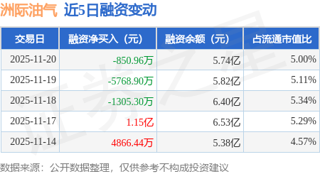 证券之星消息,11月20日,洲际油气(600759)融资买入8668.49万元,融资偿还9519.45万元,融资净卖出850.96万元,融资余额5.74亿元,近20个交易日中有11个交易日出现融资净买入。