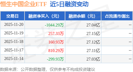 证券之星消息,11月20日,恒生中国企业ETF(510900)融资买入2641.14万元,融资偿还3685.43万元,融资净卖出1044.29万元,融资余额27.04亿元。