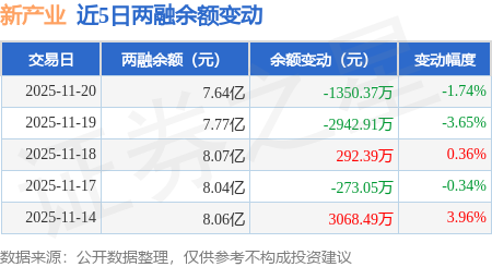证券之星消息,11月20日,新产业(300832)融资买入653.42万元,融资偿还2004.48万元,融资净卖出1351.05万元,融资余额7.6亿元。