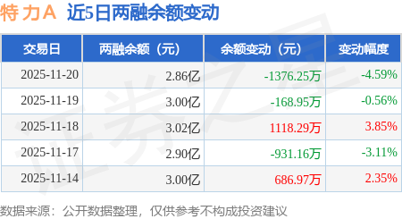证券之星消息,11月20日,特 力A(000025)融资买入4998.67万元,融资偿还6370.97万元,融资净卖出1372.3万元,融资余额2.85亿元,近20个交易日中有11个交易日出现融资净买入。