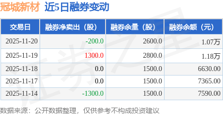 证券之星消息,11月20日,冠城新材(600067)融资买入1862.87万元,融资偿还3439.77万元,融资净卖出1576.9万元,融资余额2.33亿元。