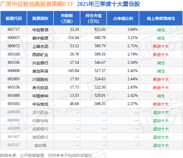 广发中证智选高股息策略ETF的前十大重仓股如下: