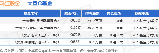 根据2025基金Q3季报公募基金重仓股数据,重仓该股的公募基金共4家,其中持有数量最多的公募基金为金鹰基金的金鹰元和灵活配置混合A。金鹰元和灵活配置混合A目前规模为0.55亿元,最新净值1.1807(11月20日),较上一交易日下跌0.55%,近一年上涨3.09%。该公募基金现任基金经理为倪超。倪超在任的基金产品包括:金鹰行业优势混合A,管理时间为2015年6月11日至今,期间收益率为35.47%;金鹰鑫瑞混合A,管理时间为2020年9月25日至今,期间收益率为29.47%;金鹰年年邮享一年持有债券A,管理时间为2021年11月25日至今,期间收益率为8.81%。