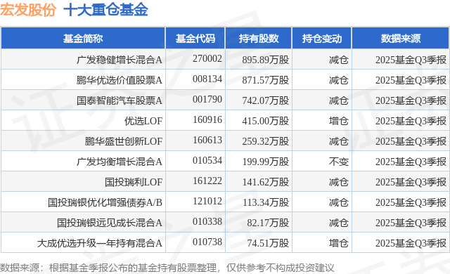重仓宏发股份的前十大公募基金请见下表: