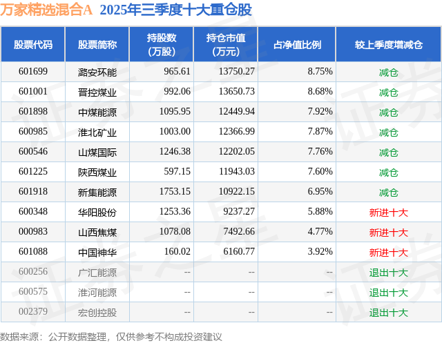 根据2025基金Q3季报公募基金重仓股数据,重仓该股的公募基金共25家,其中持有数量最多的公募基金为万家基金的万家精选混合A。万家精选混合A目前规模为10.85亿元,最新净值1.7944(11月20日),较上一交易日下跌1.81%,近一年上涨0.47%。该公募基金现任基金经理为黄海。黄海在任的基金产品包括:万家新利灵活配置混合,管理时间为2020年9月23日至今,期间收益率为65.43%;万家宏观择时多策略混合A,管理时间为2020年9月23日至今,期间收益率为57.96%。