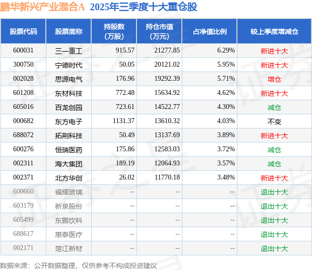 根据2025基金Q3季报公募基金重仓股数据,重仓该股的公募基金共39家,其中持有数量最多的公募基金为鹏华基金的鹏华新兴产业混合A。鹏华新兴产业混合A目前规模为33.81亿元,最新净值3.329(11月20日),较上一交易日下跌0.83%,近一年上涨25.53%。该公募基金现任基金经理为梁浩。梁浩在任的基金产品包括:鹏华新兴成长混合A,管理时间为2020年7月17日至今,期间收益率为-17.17%;鹏华成长智选混合A,管理时间为2020年10月19日至今,期间收益率为-2.95%;鹏华汇智优选混合A,管理时间为2021年1月8日至今,期间收益率为-26.82%。