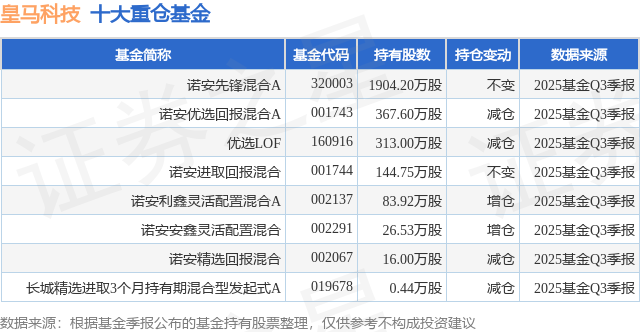 根据2025基金Q3季报公募基金重仓股数据,重仓该股的公募基金共8家,其中持有数量最多的公募基金为诺安基金的诺安先锋混合A。诺安先锋混合A目前规模为43.45亿元,最新净值3.1466(11月20日),较上一交易日下跌1.09%,近一年上涨27.51%。该公募基金现任基金经理为杨谷。杨谷在任的基金产品包括:诺安优选回报混合A,管理时间为2023年10月21日至今,期间收益率为37.24%;诺安精选回报混合,管理时间为2023年10月21日至今,期间收益率为43.41%;诺安进取回报混合,管理时间为2024年4月13日至今,期间收益率为53.4%。
