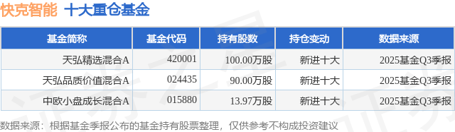 重仓快克智能的公募基金请见下表: