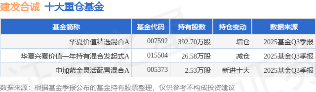 根据2025基金Q3季报公募基金重仓股数据,重仓该股的公募基金共3家,其中持有数量最多的公募基金为华夏基金的华夏价值精选混合A。华夏价值精选混合A目前规模为9.64亿元,最新净值1.9005(11月20日),较上一交易日下跌0.22%,近一年上涨40.73%。该公募基金现任基金经理为朱熠。朱熠在任的基金产品包括:华夏兴夏价值一年持有混合发起式A,管理时间为2023年5月5日至今,期间收益率为45.74%;华夏红利价值混合A,管理时间为2025年8月12日至今,期间收益率为7.76%。