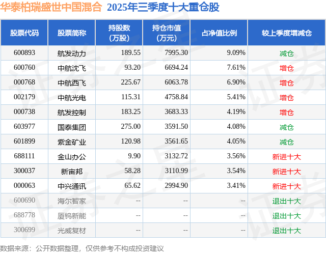 根据2025基金Q3季报公募基金重仓股数据,重仓该股的公募基金共10家,其中持有数量最多的公募基金为华泰柏瑞基金的华泰柏瑞盛世中国混合。华泰柏瑞盛世中国混合目前规模为8.79亿元,最新净值0.3164(11月20日),较上一交易日下跌1.31%,近一年上涨4.46%。该公募基金现任基金经理为陆从珍。陆从珍在任的基金产品包括:华泰柏瑞积极成长混合,管理时间为2020年7月1日至今,期间收益率为14.67%;