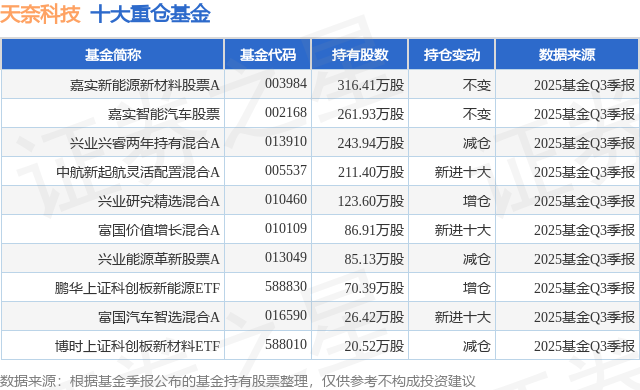 根据2025基金Q3季报公募基金重仓股数据,重仓该股的公募基金共21家,其中持有数量最多的公募基金为嘉实基金的嘉实新能源新材料股票A。嘉实新能源新材料股票A目前规模为29.87亿元,最新净值2.8707(11月20日),较上一交易日下跌1.46%,近一年上涨55.47%。该公募基金现任基金经理为姚志鹏 熊昱洲。姚志鹏在任的基金产品包括:嘉实智能汽车股票,管理时间为2016年4月30日至今,期间收益率为200.64%;嘉实环保低碳股票,管理时间为2018年3月21日至今,期间收益率为111.43%;嘉实产业先锋混合A,管理时间为2020年7月21日至今,期间收益率为13.48%。熊昱洲在任的基金产品包括:嘉实新优选混合,管理时间为2021年8月26日至今,期间收益率为-2.07%;嘉实产业先锋混合A,管理时间为2022年7月13日至今,期间收益率为14.7%;嘉实全球创新龙头股票(QDII)人民币A,管理时间为2023年3月14日至今,期间收益率为22.62%。