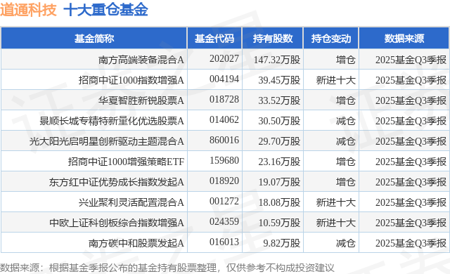根据2025基金Q3季报公募基金重仓股数据,重仓该股的公募基金共32家,其中持有数量最多的公募基金为南方基金的南方高端装备混合A。南方高端装备混合A目前规模为8.31亿元,最新净值3.3117(11月20日),较上一交易日下跌0.56%,近一年上涨47.33%。该公募基金现任基金经理为张磊。张磊在任的基金产品包括:南方新材料股票发起A,管理时间为2023年3月21日至今,期间收益率为15.72%。