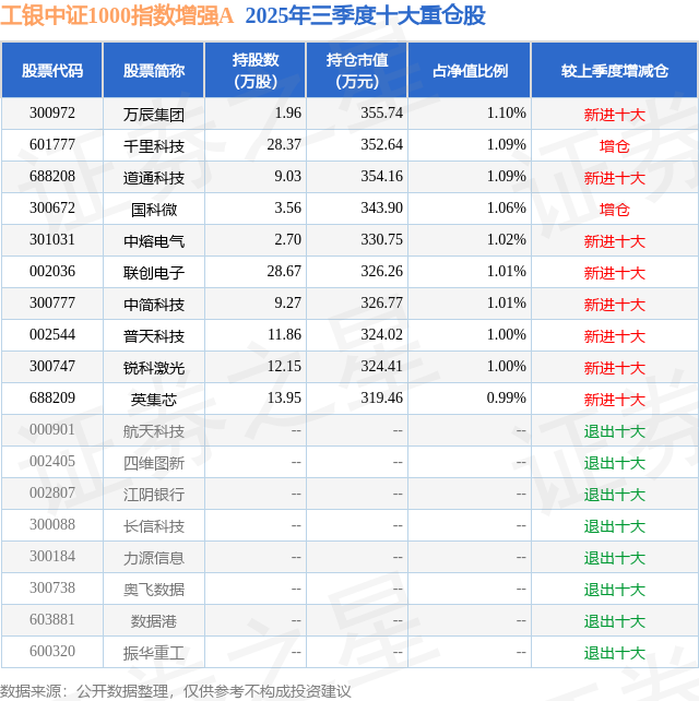 根据2025基金Q3季报公募基金重仓股数据,重仓该股的公募基金共3家,其中持有数量最多的公募基金为工银瑞信基金的工银中证1000指数增强A。工银中证1000指数增强A目前规模为2.09亿元,最新净值1.3373(11月20日),较上一交易日下跌0.78%,近一年上涨39.84%。该公募基金现任基金经理为何顺。何顺在任的基金产品包括:工银聚享混合A,管理时间为2023年10月20日至今,期间收益率为50.44%;工银新价值灵活配置混合A,管理时间为2024年4月1日至今,期间收益率为18.99%;工银瑞信中证港股通高股息精选ETF,管理时间为2024年5月30日至今,期间收益率为11.62%。