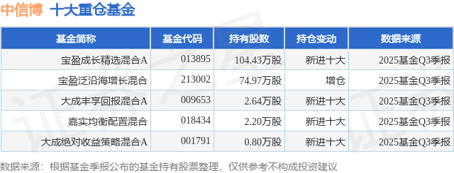 重仓中信博的公募基金请见下表: