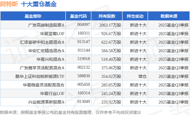根据2025基金Q3季报公募基金重仓股数据,重仓该股的公募基金共31家,其中持有数量最多的公募基金为广发基金的广发高端制造股票A。广发高端制造股票A目前规模为44.24亿元,最新净值1.4823(11月20日),较上一交易日下跌0.96%,近一年下跌1.59%。该公募基金现任基金经理为郑澄然。郑澄然在任的基金产品包括:广发鑫享灵活配置混合A,管理时间为2020年5月20日至今,期间收益率为50.66%;广发兴诚混合A,管理时间为2021年1月6日至今,期间收益率为-49.54%;广发诚享混合A,管理时间为2021年2月8日至今,期间收益率为-50.0%。