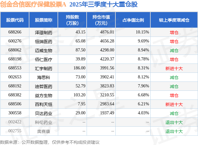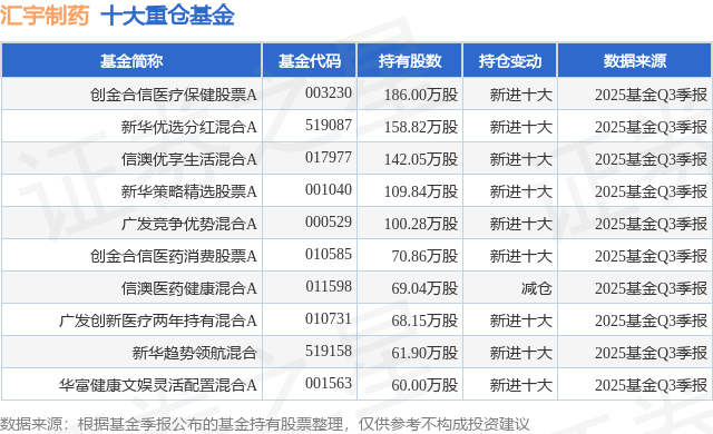 根据2025基金Q3季报公募基金重仓股数据,重仓该股的公募基金共19家,其中持有数量最多的公募基金为创金合信基金的创金合信医疗保健股票A。创金合信医疗保健股票A目前规模为1.92亿元,最新净值2.1056(11月20日),较上一交易日上涨0.84%,近一年上涨27.55%。该公募基金现任基金经理为皮劲松。皮劲松在任的基金产品包括:创金合信大健康混合A,管理时间为2022年1月26日至今,期间收益率为-24.71%;创金合信医药优选3个月持有混合A,管理时间为2022年8月30日至今,期间收益率为-8.56%;创金合信全球医药生物股票发起(QDII)A,管理时间为2023年11月17日至今,期间收益率为74.2%。
