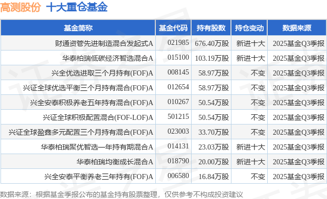 根据2025基金Q3季报公募基金重仓股数据,重仓该股的公募基金共16家,其中持有数量最多的公募基金为财通资管的财通资管先进制造混合发起式A。财通资管先进制造混合发起式A目前规模为1.94亿元,最新净值1.5869(11月20日),较上一交易日下跌1.54%。该公募基金现任基金经理为徐竞择。