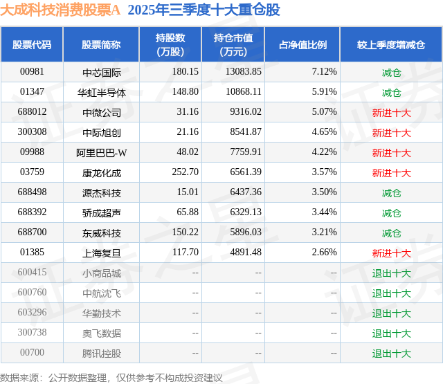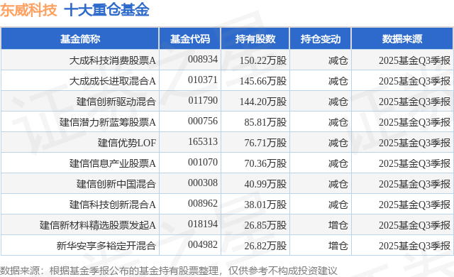 根据2025基金Q3季报公募基金重仓股数据,重仓该股的公募基金共15家,其中持有数量最多的公募基金为大成基金的大成科技消费股票A。大成科技消费股票A目前规模为8.65亿元,最新净值0.9891(11月20日),较上一交易日下跌0.41%,近一年上涨36.05%。该公募基金现任基金经理为杜聪。杜聪在任的基金产品包括:大成成长进取混合A,管理时间为2024年4月2日至今,期间收益率为74.84%;大成至臻回报混合A,管理时间为2025年6月25日至今,期间收益率为9.9%。