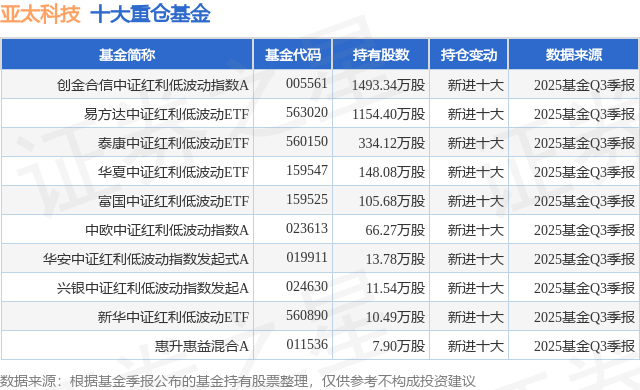 根据2025基金Q3季报公募基金重仓股数据,重仓该股的公募基金共13家,其中持有数量最多的公募基金为创金合信基金的创金合信中证红利低波动指数A。创金合信中证红利低波动指数A目前规模为18.12亿元,最新净值2.2367(11月20日),较上一交易日上涨0.43%,近一年上涨11.04%。该公募基金现任基金经理为孙悦 董梁。董梁在任的基金产品包括:创金合信沪深300指数增强A,管理时间为2018年11月19日至今,期间收益率为93.35%;创金合信量化多因子股票A,管理时间为2019年7月5日至今,期间收益率为114.19%;创金合信中证500指数增强A,管理时间为2019年7月5日至今,期间收益率为81.1%;创金合信中证1000指数增强A,管理时间为2019年7月5日至今,期间收益率为110.97%。孙悦在任的基金产品包括:创金合信港股通量化股票A,管理时间为2021年1月19日至今,期间收益率为1.43%;创金合信中证1000指数增强A,管理时间为2021年7月9日至今,期间收益率为29.54%;创金合信沪深300指数增强A,管理时间为2021年7月19日至今,期间收益率为0.07%。