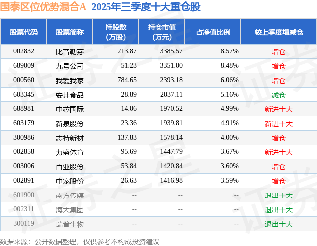 根据2025基金Q3季报公募基金重仓股数据,重仓该股的公募基金共8家,其中持有数量最多的公募基金为国泰基金的国泰区位优势混合A。国泰区位优势混合A目前规模为2.45亿元,最新净值4.714(11月20日),较上一交易日下跌0.81%,近一年上涨27.03%。该公募基金现任基金经理为智健。