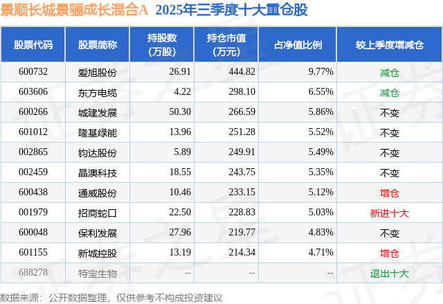 根据2025基金Q3季报公募基金重仓股数据,重仓该股的公募基金共4家,其中持有数量最多的公募基金为景顺长城基金的景顺长城景骊成长混合A。景顺长城景骊成长混合A目前规模为0.45亿元,最新净值0.895(11月20日),较上一交易日下跌1.23%,近一年下跌3.2%。该公募基金现任基金经理为梁荣。