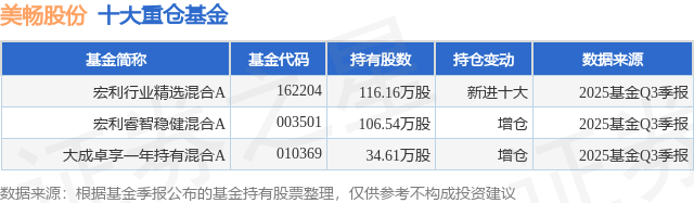 根据2025基金Q3季报公募基金重仓股数据,重仓该股的公募基金共3家,其中持有数量最多的公募基金为宏利基金的宏利行业精选混合A。宏利行业精选混合A目前规模为7.23亿元,最新净值8.6824(11月20日),较上一交易日下跌0.98%,近一年上涨24.77%。该公募基金现任基金经理为孟杰。孟杰在任的基金产品包括:宏利睿智稳健混合A,管理时间为2020年9月7日至今,期间收益率为87.15%;宏利睿智成长混合A,管理时间为2024年5月14日至今,期间收益率为47.72%;宏利价值驱动6个月持有混合A,管理时间为2024年11月27日至今,期间收益率为31.15%。