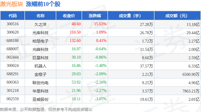 从资金流向上来看,当日激光板块主力资金净流出21.41亿元,游资资金净流入4.58亿元,散户资金净流入16.83亿元。激光板块个股资金流向见下表: