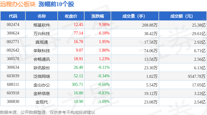 从资金流向上来看,当日远程办公板块主力资金净流出13.9亿元,游资资金净流入1.56亿元,散户资金净流入12.34亿元。远程办公板块个股资金流向见下表: