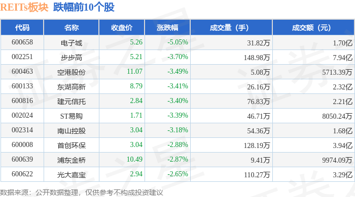 证券之星消息,11月21日REITs板块较上一交易日下跌1.77%,电子城领跌。当日上证指数报收于3834.89,下跌2.45%。深证成指报收于12538.07,下跌3.41%。REITs板块个股涨跌见下表: