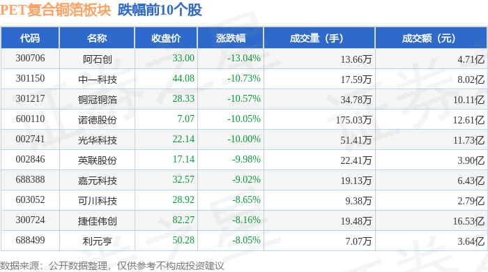 从资金流向上来看,当日PET复合铜箔板块主力资金净流出21.07亿元,游资资金净流入4.99亿元,散户资金净流入16.08亿元。PET复合铜箔板块个股资金流向见下表: