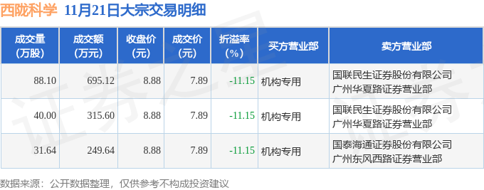 证券之星消息,11月21日西陇科学发生大宗交易,交易数据如下:
