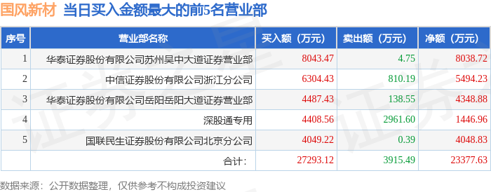 从龙虎榜公布的当日买卖数据来看,北向资金合计净买入1446.96万元。章盟主等知名游资榜上有名。(知名游资章盟主一般指国泰海通证券股份有限公司上海长宁区江苏路证券营业部席位,根据市场资料整理,仅供参考)