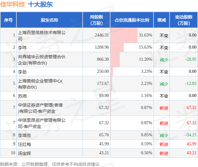 根据佳华科技2025年三季报公布的十大股东详情如下: