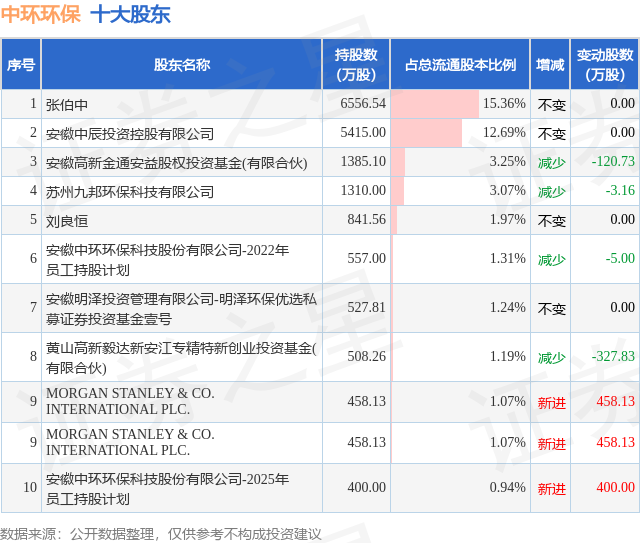 根据中环环保2025年三季报公布的十大股东详情如下: