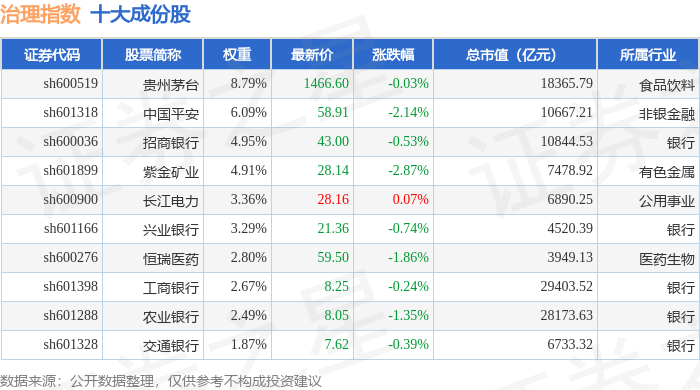 资金流向方面,治理指数(000019)成份股当日主力资金净流出合计95.41亿元,游资资金净流入合计19.96亿元,散户资金净流入合计75.45亿元。成份股资金流向详情见下表: