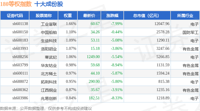 证券之星消息,11月21日,180等权(000051)指数报收于9037.6点,跌2.44%,成交2623.21亿元,换手率0.56%。当日该指数成份股中,上涨的有13家,传音控股以6.26%的涨幅领涨,下跌的有164家,合盛硅业以9.82%的跌幅领跌。