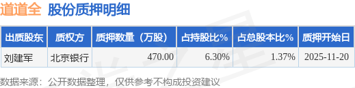 证券之星消息,道道全(002852)11月21日公开信息显示,股东刘建军向北京银行合计质押470.0万股,占总股本1.37%。质押详情见下表: