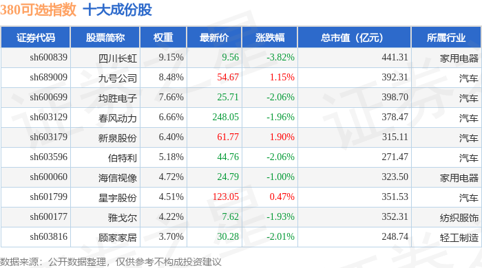 380可选(000107)指数十大成份股详情如下: