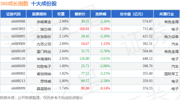 380成长(000117)指数十大成份股详情如下: