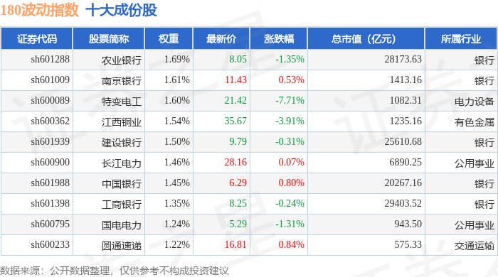 资金流向方面,180波动(000129)指数成份股当日主力资金净流出合计72.72亿元,游资资金净流入合计16.58亿元,散户资金净流入合计56.14亿元。成份股资金流向详情见下表: