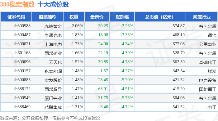 资金流向方面,380稳定(000142)指数成份股当日主力资金净流出合计63.97亿元,游资资金净流入合计11.88亿元,散户资金净流入合计52.09亿元。成份股资金流向详情见下表: