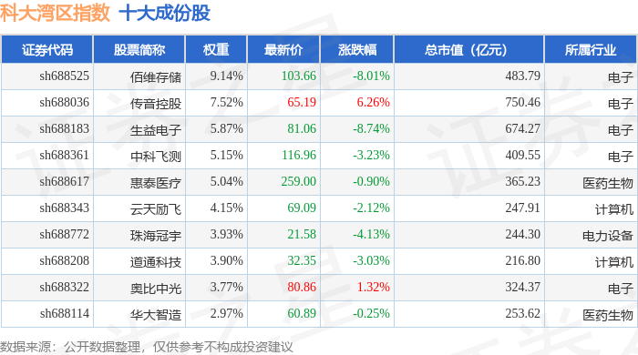 证券之星消息,11月21日,科大湾区(000697)指数报收于1208.29点,跌3.22%,成交175.17亿元,换手率2.18%。当日该指数成份股中,上涨的有4家,传音控股以6.26%的涨幅领涨,下跌的有52家,明微电子以9.44%的跌幅领跌。