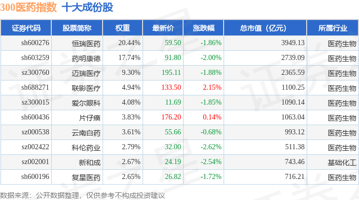 资金流向方面,300医药(000913)指数成份股当日主力资金净流出合计18.53亿元,游资资金净流入合计2.71亿元,散户资金净流入合计15.82亿元。成份股资金流向详情见下表: